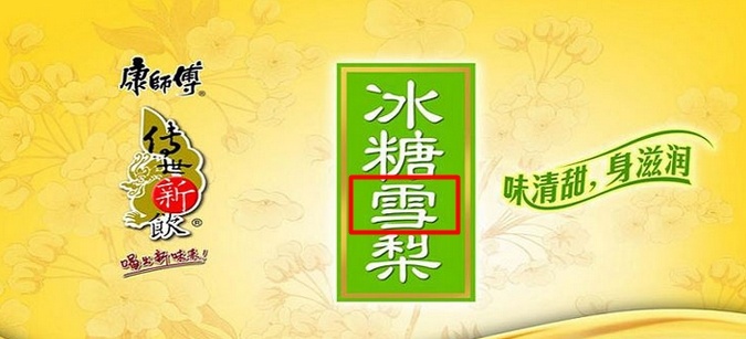 你以為這是冰糖雪梨,再仔細看看,沒錯,這就是正宗的冰糖雪梨。但是有的商家就是把康師傅的錯別字“雪”換成正確的“雪”。就是在雪字上面有一些細微的差別,就是中間的橫更長一些還是短一些的問題。這些廠家的模仿商標也是一絕啊!